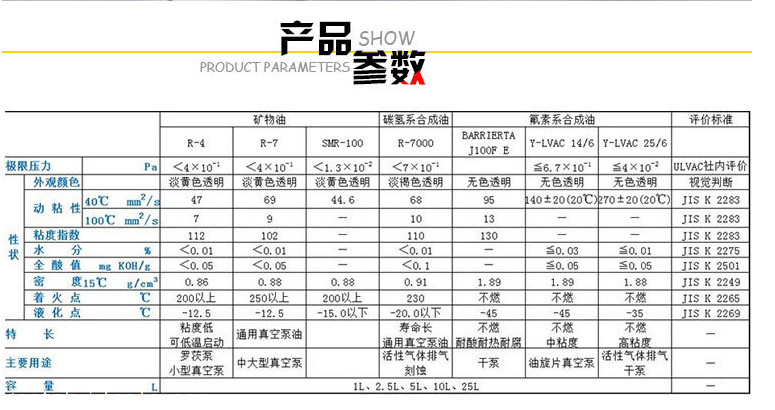 ULVAC爱发科真空泵油:r-7r-4r-2r-80R-7000R-7500R-8000FOMBLINYLVAC06/6FOMBLINYLVAC 14/6 FOMBLINYLVAC25/8SMR-100扩散泵油:d-11d-31B-50K真空泵油脂:z-300,Super Z-300